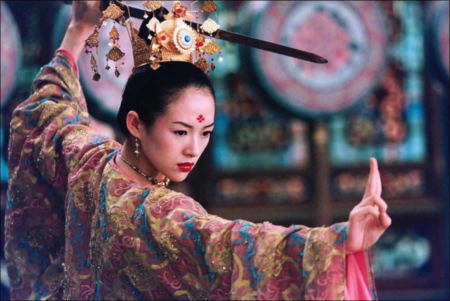 In “Hero” Zhang was accused on various occasions as kowtowing before Chinese rulers by erecting a memorial to the first Emperor of Ch’in. The gesture has embittered many critics even more, as Zhang was actually considered the representative of the “fifth generation” that gave Chinese cinema, which is constantly threatened by censorship, international prestige. At any rate, “House of Flying Daggers” does not show the ruler, and his absence makes the decay of his empire all the more noticeable.