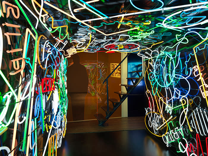 1. Marta Minujín, The Neon Tunnel, from La Menesunda Reloaded, 1965. New Museum 2019. 95 words.