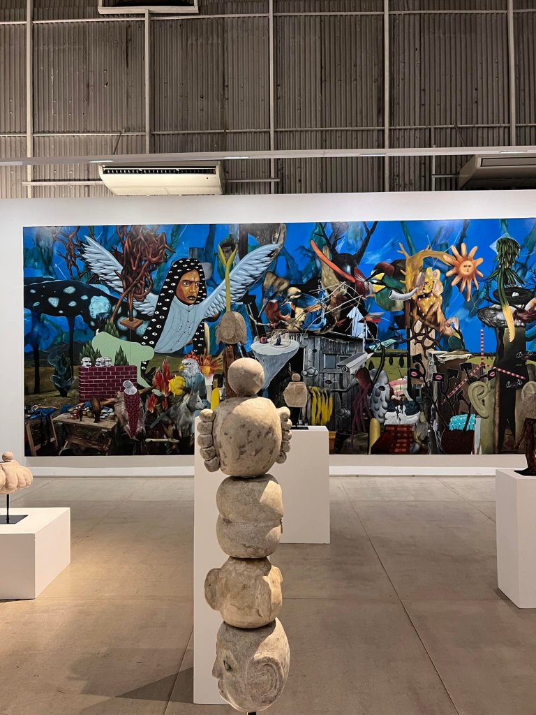 May tenga ang lupa, may pakpak ang balita (The land has ears, the news has wings) is an aphorism that reminds us not only that contemporary realities have ancient roots but also that nonhuman actors matter in telling the story. In Rodel Tapaya’s own words, it is these stories that give us existence: “… myths and folktales are our ancestors”. The labyrinthine genealogy of folklore runs through these paintings to show us the fine line that separates imagination and falsehood. These works occasion contemplation of how massive disinformation is built upon a maze of folklorism that confuses our way of interpreting and remembering.