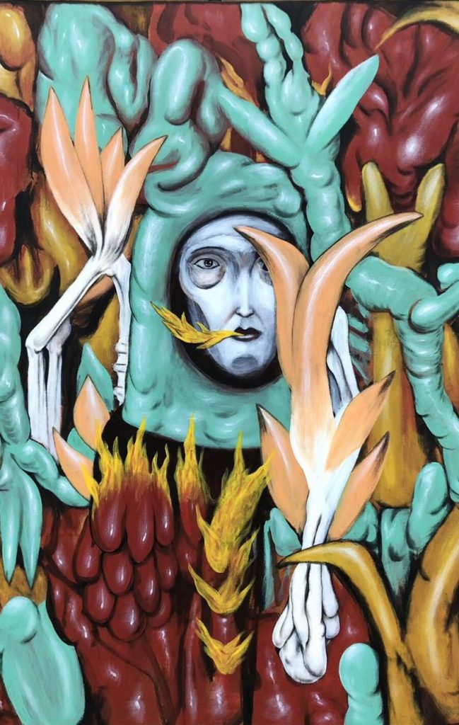 Vegetative forms in portraiture have been around since the Renaissance. The Italian painter Giuseppe Arcimboldo (1526-1593) constructed portrait heads by overlapping objects that make various anatomical shapes; with each assembled object relating to the portrait’s characterization. 19th century Filipino painter, Jose Honorato Lozano’s Letras y Figuras (1815-1885) also used flora and fauna to create portraits not by painting likeness but by spelling the names of their commissioners. Both examples show quite literally how nature shapes human identity.