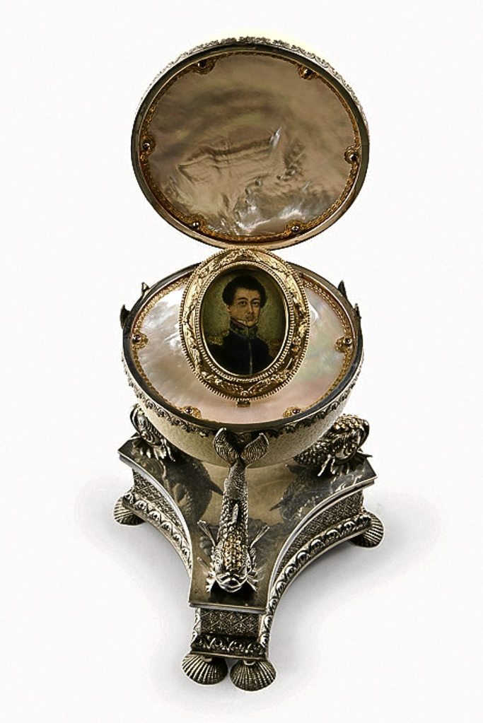 In his self-portrait, Domingo presents his distinct Chinese mestizo features (Santiago 2000, 83). He is dressed in the uniform of a Spanish navy ensign. The miniature, once thought lost, was later rediscovered during an audit of the Luis Araneta Collection, where it had been carefully stored inside an ostrich egg, wrapped in gold and mother of pearl, and mounted on silver.