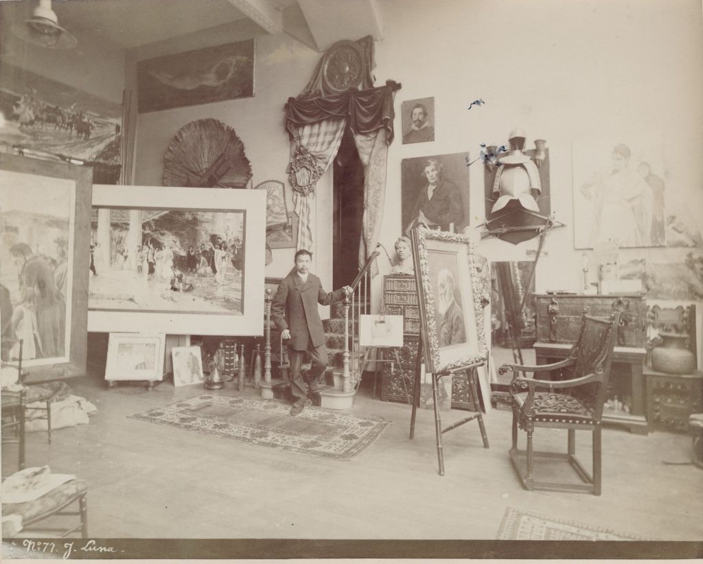 For a long time, art historians have speculated about Juan Luna’s larger network of artists in Paris, including the extent to which he moved within the academic orbit of Jean-Léon Gérôme, the towering figure of French Orientalism. Gérôme’s pedagogical influence has often been inferred through stylistic parallels and early biographical testimony, yet documentary anchors have remained thin. Recently, however, a digitized album from the Frick Art Reference Library’s Photographs of Artists in Their Studios—a collection of seventy-four albumen prints assembled by the American artist Frank W. Stokes between 1887 and 1892—offers an unexpected point of contact. Luna and Gérôme appear in the same album, photographed in their respective studios during precisely the years when Luna was working in Paris. Though the images do not prove direct mentorship, their inclusion within the same tightly curated network of artists—many of them Stokes’s instructors, colleagues, and acquaintances at the École nationale supérieure des Beaux-Arts—suggests that Luna occupied a far more integrated position within the Paris art world than Philippine historiography has previously emphasized.
